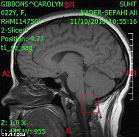 penyakit langka yang disebut Chiari Malformation Arnold,dimana volume otak yang